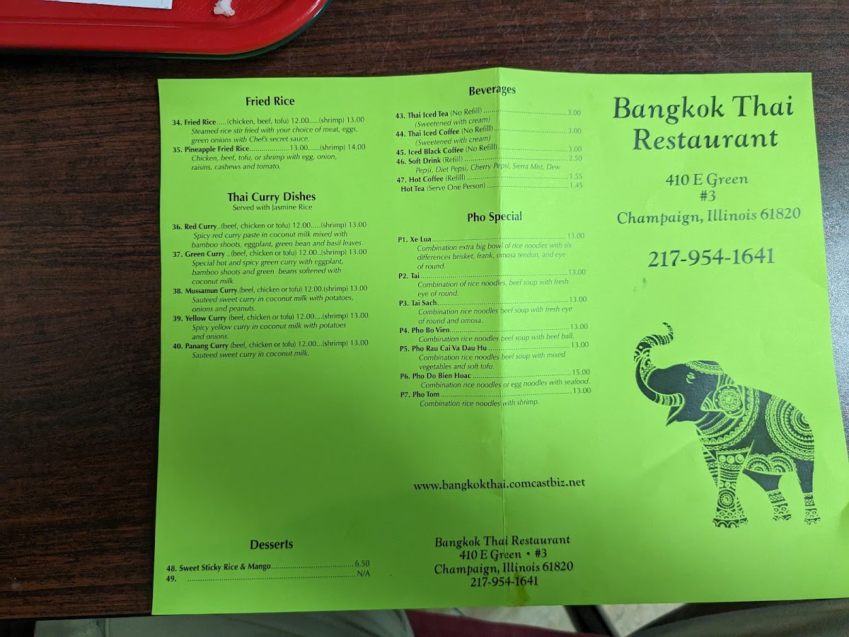 Bangkok Thai Restaurant & Pho 911, located at 410 E Green St in Champaign, IL, stands out as a beacon for those seeking authentic Thai cuisine that truly honors its roots. This spot is celebrated for delivering vibrant, genuine flavors without succumbing to the overly sweetened versions typical of many Thai restaurants in the U.S. The service is notably warm and efficient, creating an inviting atmosphere that complements the quality of the food.